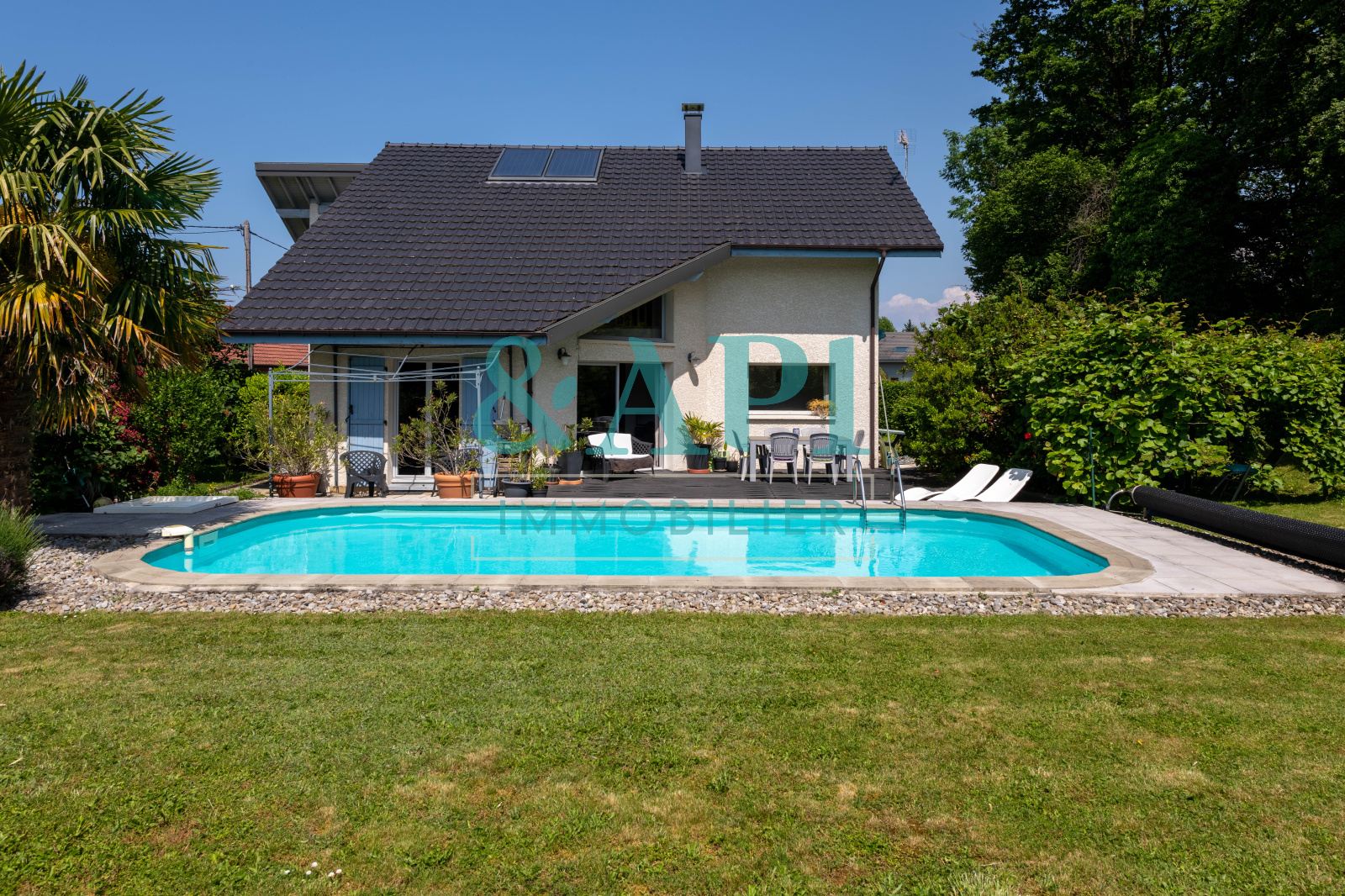 VENDU- EN EXCLUSIVITE, Aurélie et Patricia vous proposent une villa de 150 m² sur un terrain de plus de de 1000 m². Orientée sud/ouest, sans vis-à-vis, elle se situe dans un quartier résidentiel très calme et proche du Golf. La maison se compose d'une entrée, d'un salon séjour ouvert sur la cuisine , de 5 chambres, une mezzanine et de deux salle de bains. Le jardin est orientée SUD OUEST et est agrémentée d'une piscine. Pour plus d'informations, contactez Aurélie ou Patricia au 04 50 16 09 68 Site internet: www.immobilierapi.com